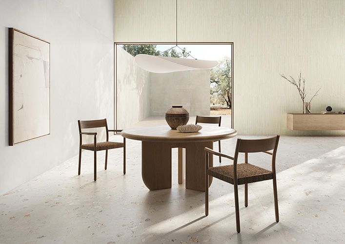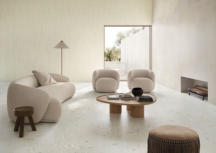 La profondeur des surfaces effet ciment met en valeur une architecture d’as-pect brut. Des contrastes forts entre ombre et lumière, l’expressivité des volumes, un toit en pente racontent un projet de caractère où l’esprit essentiel du matériau est le véritable protagoniste. L’utilisation judicieuse de la collection I Cementi souligne la rigueur de la structure, avec une palette qui joue sur les teintes les plus foncées, aussi bien à l’intérieur qu’à l’extérieur.