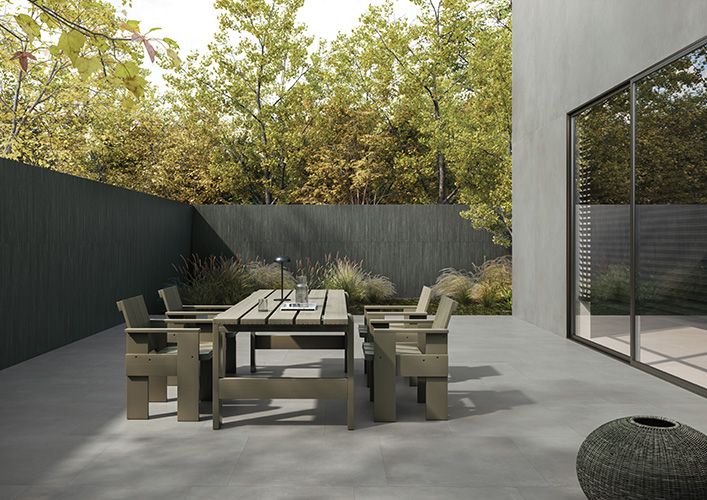 La profondeur des surfaces effet ciment met en valeur une architecture d’as-pect brut. Des contrastes forts entre ombre et lumière, l’expressivité des volumes, un toit en pente racontent un projet de caractère où l’esprit essentiel du matériau est le véritable protagoniste. L’utilisation judicieuse de la collection I Cementi souligne la rigueur de la structure, avec une palette qui joue sur les teintes les plus foncées, aussi bien à l’intérieur qu’à l’extérieur.