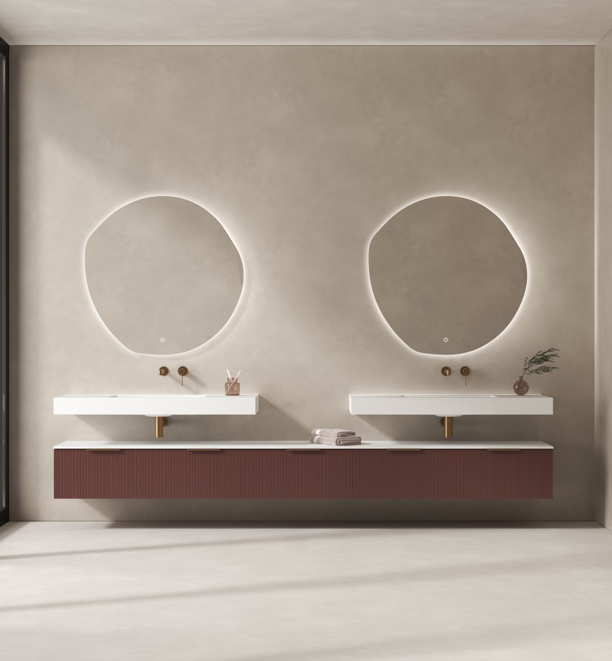 Les meubles de la collection bénéficient du sur-mesure en largeur et profondeur et se personnalisent en coloris sur RAL.